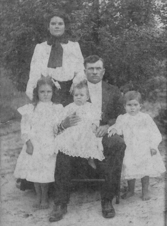 Cora Lee McClinton Dicks (standing) Leila, Aleta, Curry C. Dicks holding Buck Photo contributed by Leslie Kirk |